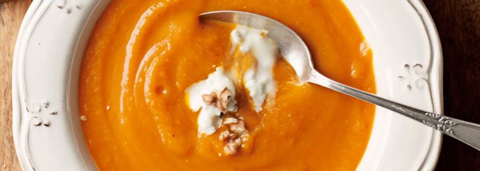 Zupa dyniowa z jabłkiem i orzechami włoskimi